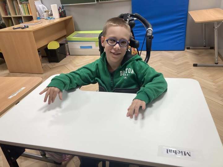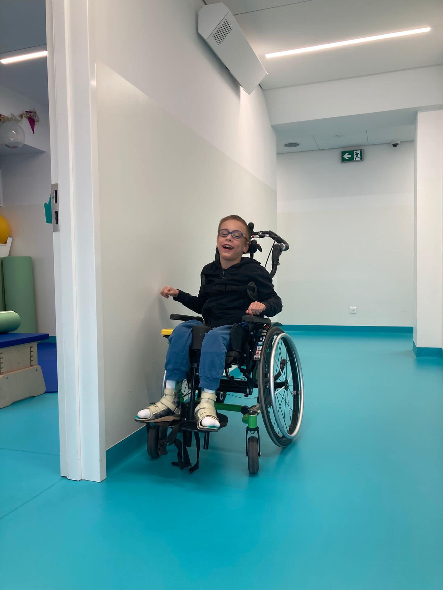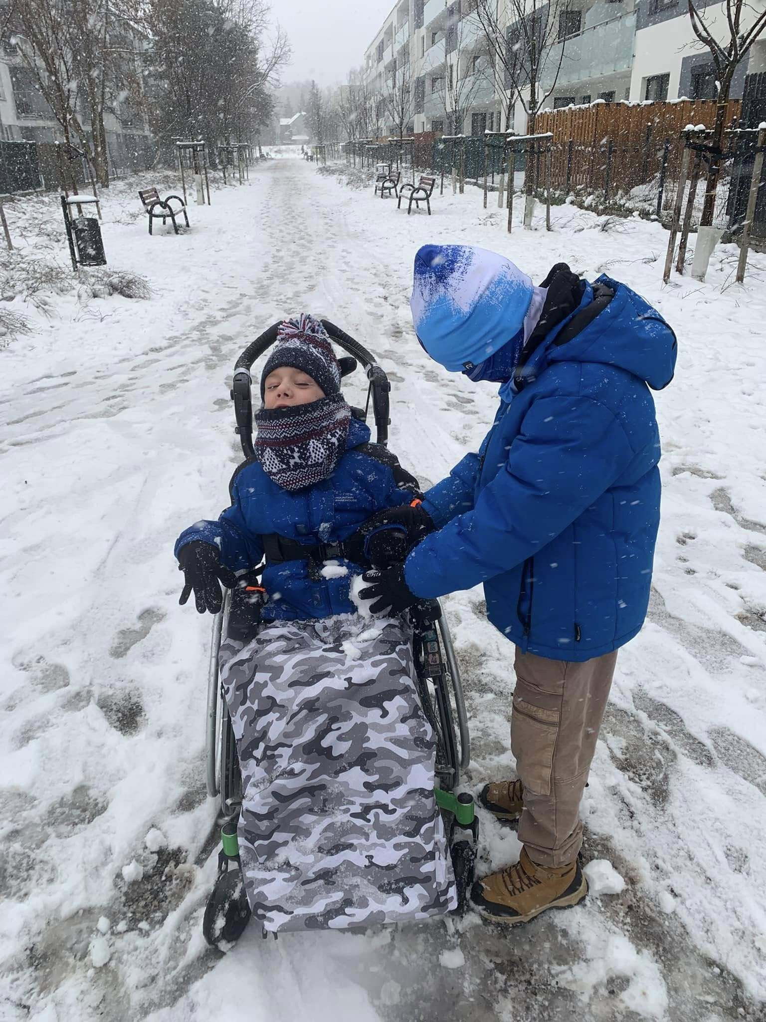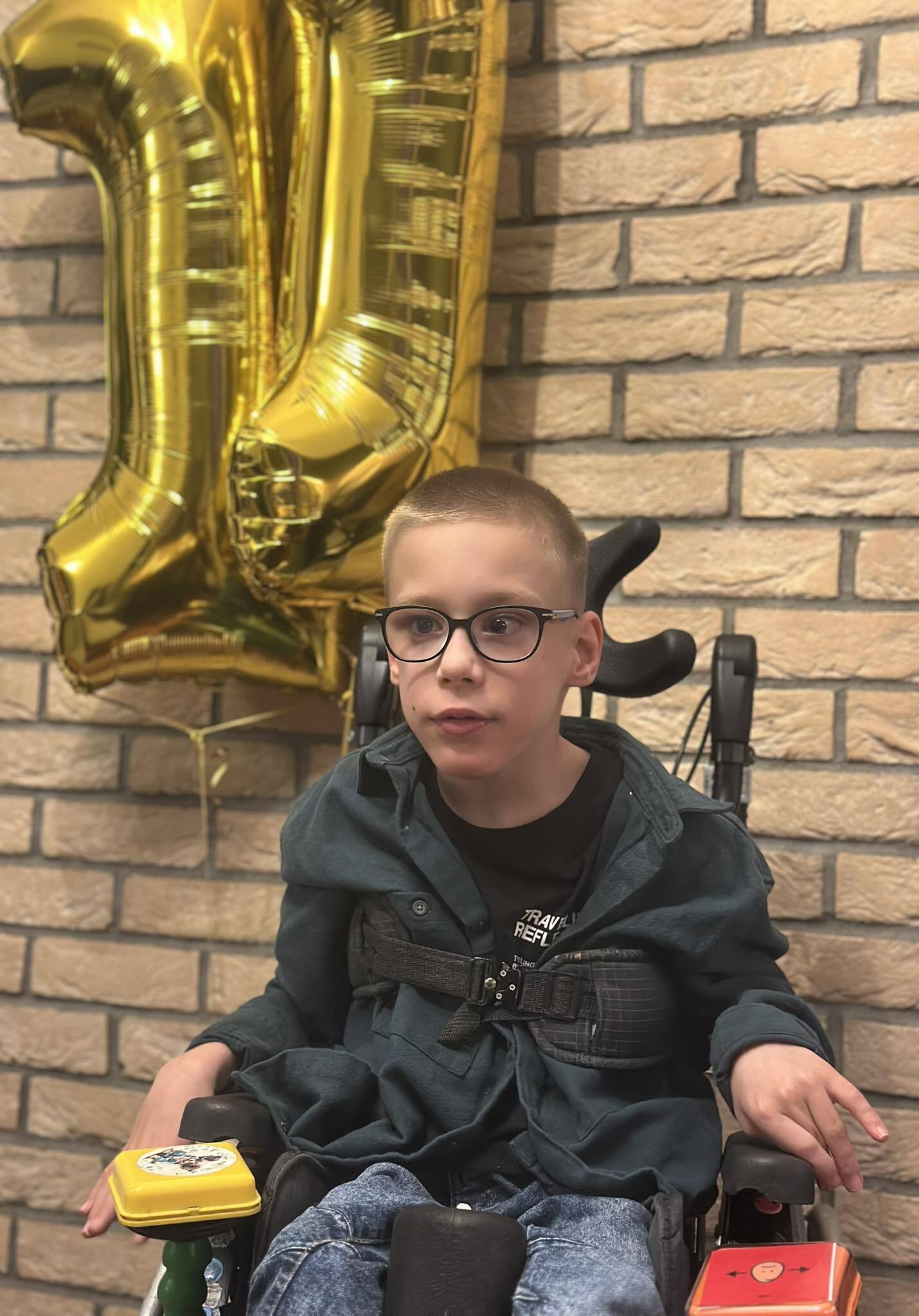 Michał skończył 11 lat, nie chodzi samodzielnie, nie mówi, nie je samodzielnie, wymaga naszego wsparcia i opieki 24 godziny na dobę. Zmaga się głównie z dziecięcym porażeniem mózgowym. Michaś jest skrajnym wcześniakiem, urodził się wraz z bratem w 28 tyg. ciąży.